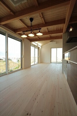 他社で検討するも、無垢材を使った内装の要望が十分聞き入れられないことから、無垢材専門の弊社へ来店頂いたのが最初のきっかけでした。その後、5か月間何度も打合せを重ね、10月に上棟する運びとなりました。