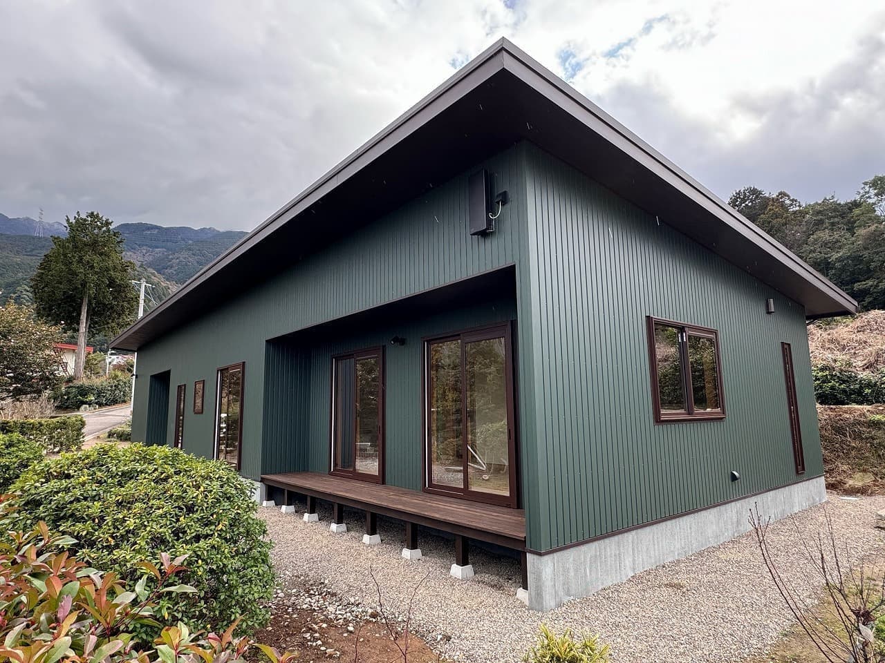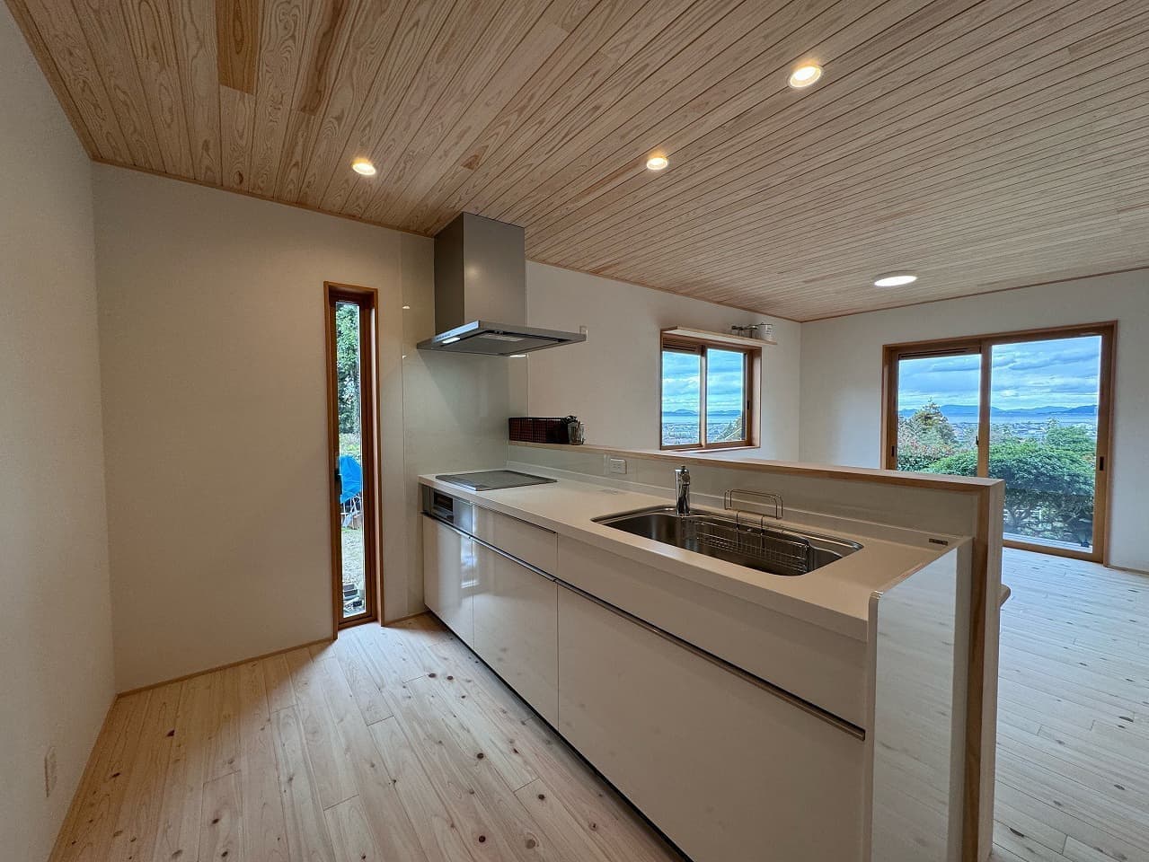 木造軸組み工法/屋根ガルバリウム鋼板縦ハゼ葺/断熱 天井セルロースファイバ・床下壁ウレタンフォーム吹付/外壁ガルバリウム鋼板/内装床ヒノキ15㎜/内装珪藻土・土壁パネルモイス/YKK樹脂サッシAPW330/木建具オリジナル/LIXILシステムバス/LIXIL システムキッチン/タンクレストイレ(パナソニック)/玄関ドアYKKスマートKEY/国産畳/長期優良住宅認定/耐震等級3/省エネ等級5