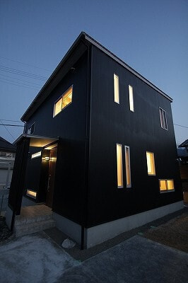 木造軸組みAPS工法/屋根ガルバ鋼板/外壁ガルバ金属サイディング/内装床1F杉厚板15㎜・2Fパイン厚板20mm/内装壁珪藻土テラ・デコール/内装天井合板表し/ワックス米ぬかベースのこめっとさん/サッシYKK複層/建具無垢ドア&施主支給品/システムバス長府/洗面台オリジナル/タンクレストイレ/木目調玄関ドア/無垢キッチン(ウッドワン・suiji)