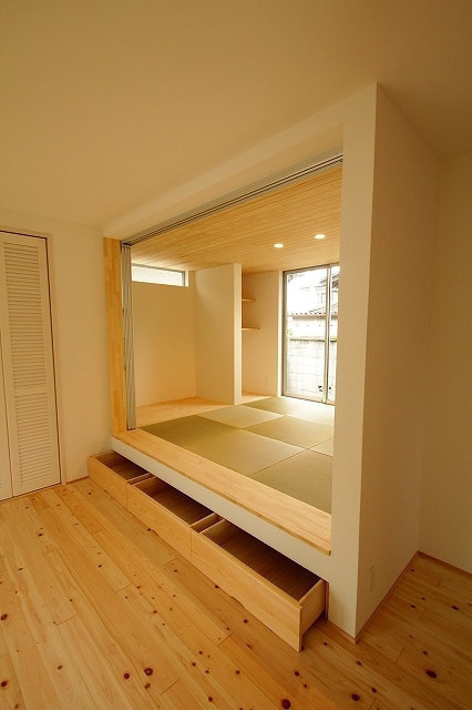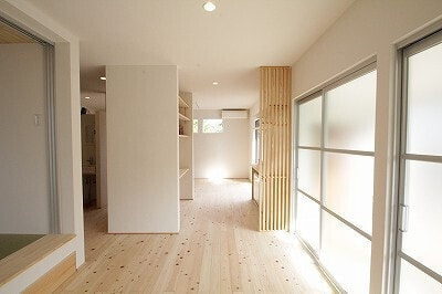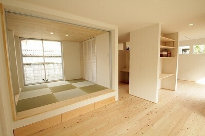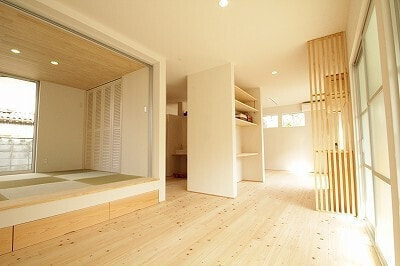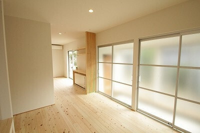最初のきっかけは、弊社が記載されている書籍をご覧いただいて興味を持っていただいたことでした。元々健康志向でカフェが好きな奥様は、特にご自宅の暗さが以前から気になっており、「日当たりのよい明るい部屋にして、人が集まりやすい家にしたい」というご希望をお持ちでした。そこで、弊社からのご提案として、近隣・道路から目線の交錯しない天井付近への窓設置と、出来る限り間仕切りをなくしてワンルーム化し、その中で仕事スペース・食事スペース・来客スペース・プライベートスペースを設けて暮らしやすい間取りにすることをご提案しました。