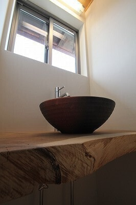 木造/築100年以上/古民家再生 ①LDK内装 床杉40mmフローリング 内装壁珪藻土(テラ・デコール) 天井杉板 キッチン取替え(ウッドワン)/②寝室 床桧無垢フローリング 内装壁珪藻土(テラ・デコール) ③和室 床ワラ床畳(熊本八代産イグサ使用) ④玄関ホール 床桧無節フローリング 内装壁珪藻土(テラ・デコール) ⑤トイレ・浴室・脱衣室 建替え ⑥中2階