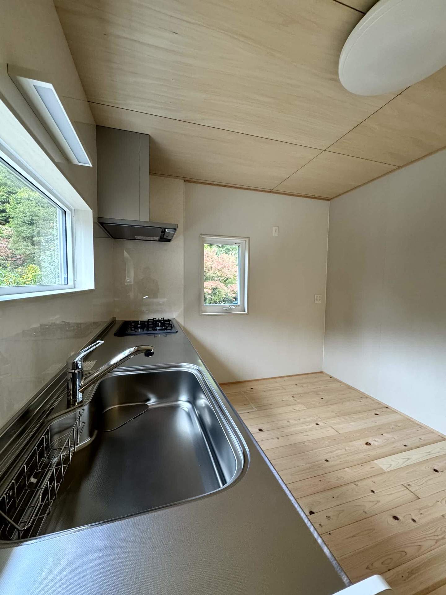 木造住宅/築55年/民家リノベーション/内装 桧15mmフローリング 内装土壁パネルモイス 天井杉羽目板/シナ合板 APW樹脂サッシ キッチンクリナップ 断熱化(床下ウレタン吹付・天井セルロースファイバー300㎜)防蟻処理 2025住宅省エネ補助金利用