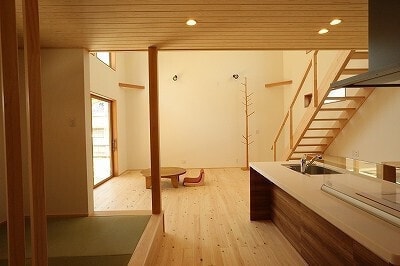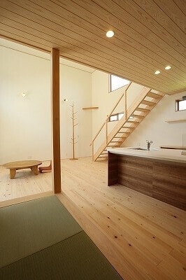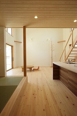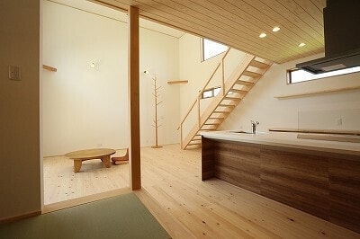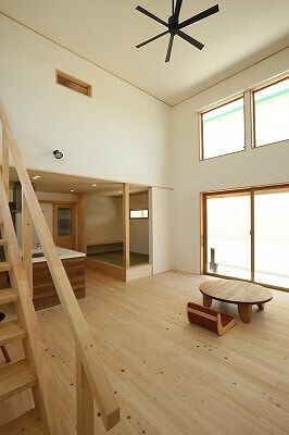 木造軸組み工法/屋根ガルバ鋼板/断熱 天井セルロースファイバ・壁高性能グラスウール/外壁塗壁/内装床ヒノキ15㎜/内装珪藻土・土壁パネルモイス/YKK樹脂サッシAPW310/建具YKK/長府システムバス/システムキッチン(LIXIL)/タンクレストイレ(パナソニック)/LIXILタンク付きトイレ/玄関ドアYKK/国産畳/オールアース施工/全館空調第一種換気システム