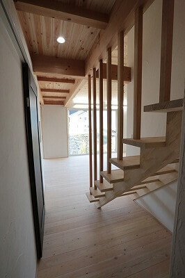 他社で検討するも、無垢材を使った内装の要望が十分聞き入れられないことから、無垢材専門の弊社へ来店頂いたのが最初のきっかけでした。その後、5か月間何度も打合せを重ね、10月に上棟する運びとなりました。