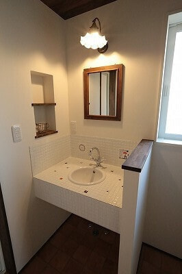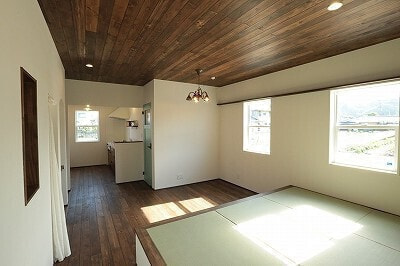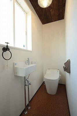 木造軸組み工法/屋根洋風瓦葺き/内断熱セルロースファイバ/外断熱EPS/外壁西洋漆喰/内装床ヒノキ15㎜/内装壁珪藻土/内装天井珪藻土/ワックス米ぬかベースのこめっとさん/YKK樹脂サッシAPW310/建具ウッドワン既製品/LIXILシステムバス/オリジナル洗面台/タンクレストイレ(パナソニック)/玄関ドアYKK/キッチン(ウッドワン)/国産ワラ床畳/オールアース施工
