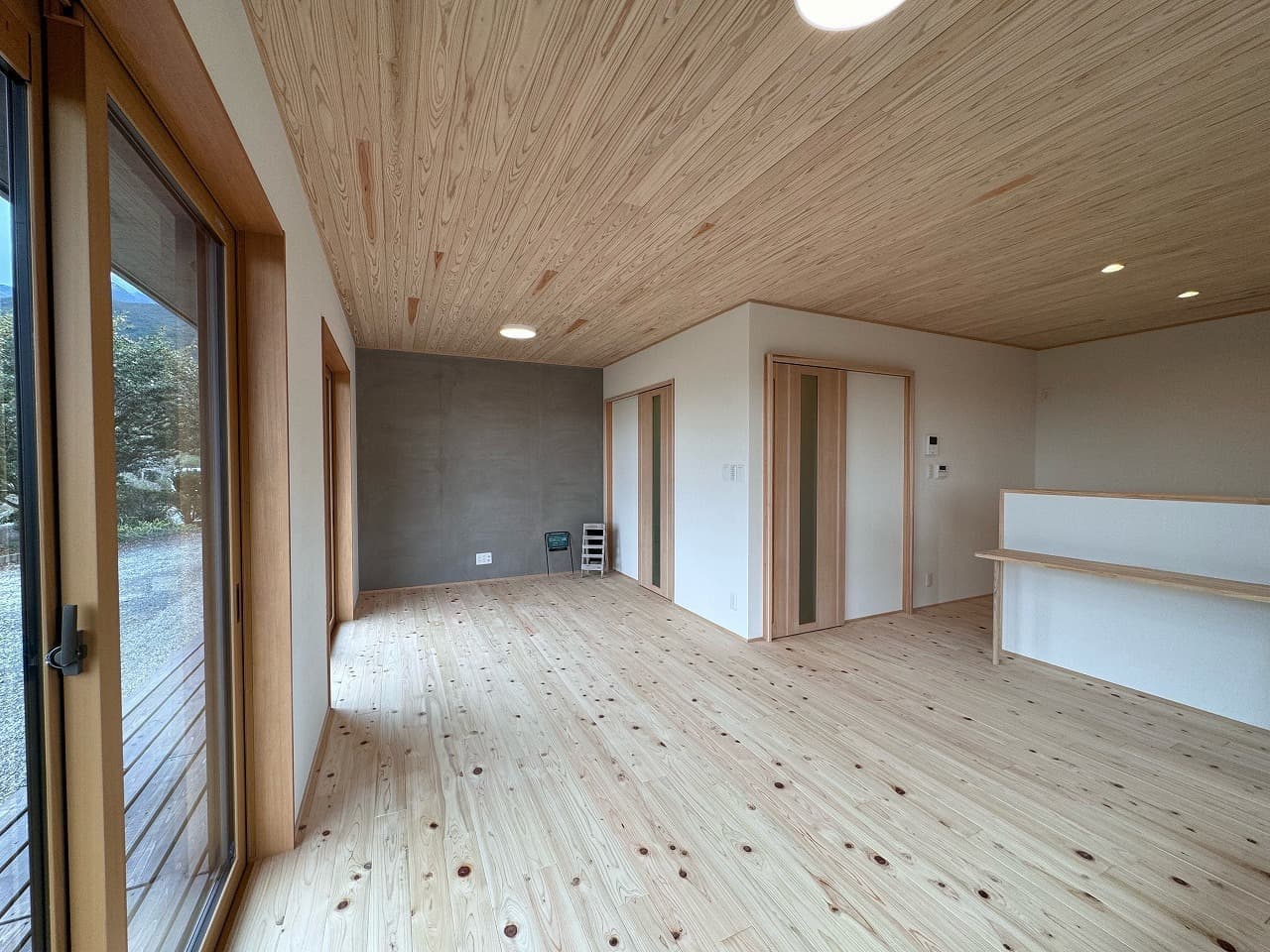 木造軸組み工法/屋根ガルバリウム鋼板縦ハゼ葺/断熱 天井セルロースファイバ・床下壁ウレタンフォーム吹付/外壁ガルバリウム鋼板/内装床ヒノキ15㎜/内装珪藻土・土壁パネルモイス/YKK樹脂サッシAPW330/木建具オリジナル/LIXILシステムバス/LIXIL システムキッチン/タンクレストイレ(パナソニック)/玄関ドアYKKスマートKEY/国産畳/長期優良住宅認定/耐震等級3/省エネ等級5